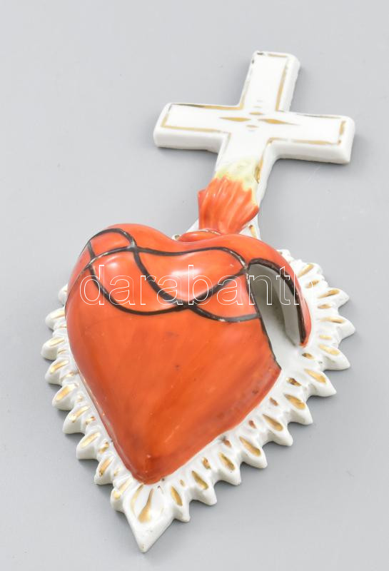 Beschreibung: cca 1900 Jézus Szentséges Szíve porcelán fali kegytárgy, jelzés nélkül, repedésvonallal, m: 18 cm