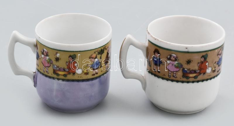 Beschreibung: cca 1930, 2 darab cseh gyermekmintás csésze, egyiken jelzéssel, pattogzással, kopással, m: 6,5 cm