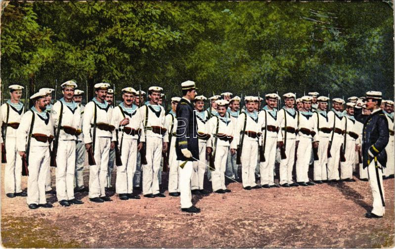 K.u.K. Kriegsmarine Gewehrexerzieren / Austro-Hungarian Navy training,... https://www.darabanth.com/de/455-Fernauktion/455.0/Ansichtskarten/Kriegsschiffe~1500027/KuK-Kriegsmarine-Gewehrexerzieren-Austro-Hungarian-Navy-training-mariners-on-mainland-R-Mari~II3018613