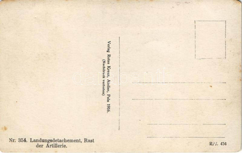 K.u.K. Kriegsmarine Landungsdetachement, Rast der Artillerie / Austro-Hungarian Navy mariners' cannon training on mainland. Rotes Kreuz Pola 1916. Nr. 354.