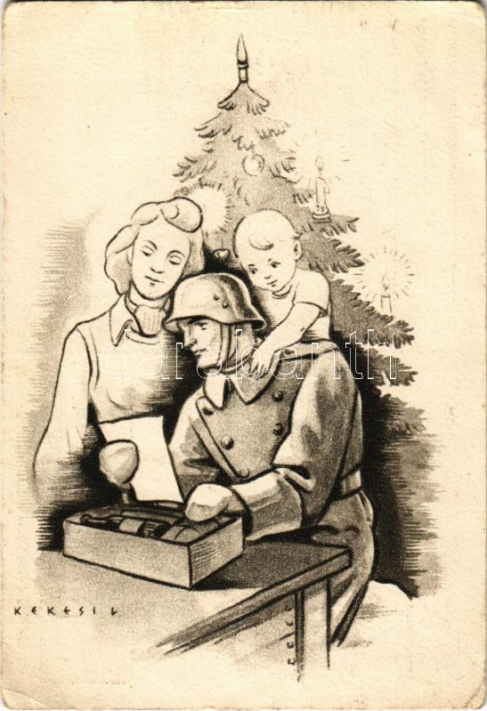 Beschreibung: 1944 Karácsony. Második világháborús magyar Tábori Postai Levelezőlap / WWII Hungarian military field postcard with Christmas greeting s: Kékesi (EB)