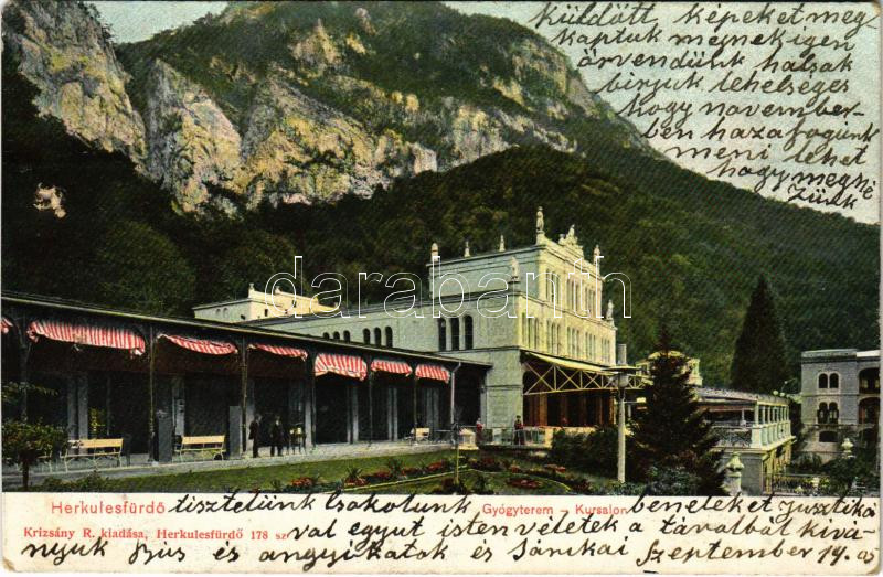 1905 Herkulesfürdő, Baile Herculane; gyógyterem. Krizsány R. kiadása /... https://www.darabanth.com/de/455-Fernauktion/455.0/Ansichtskarten/Siebenburgen~1500006/1905-Herkulesfurdo-Baile-Herculane-gyogyterem-Krizsany-R-kiadasa-Kursalon-spa-Rb~II3036401