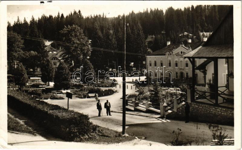 Beschreibung: 1942 Borszék, Borsec; Park, Hotel Mélik szálloda és étterem. Heiter György udvari fényképész felvétele és kiadása / park, hotel and restaurant (EK)