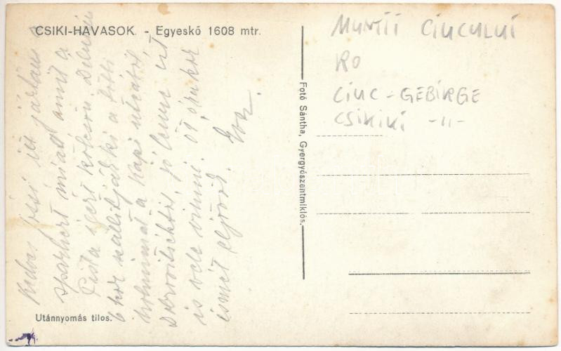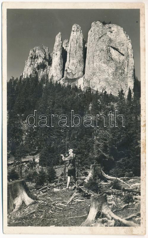 Egyes-kő, Egyeskő, Piatra Singuratica; Csíki-havasok, vadász puskával.... https://www.darabanth.com/de/455-Fernauktion/455.0/Ansichtskarten/Siebenburgen~1500006/Egyes-ko-Egyesko-Piatra-Singuratica-Csiki-havasok-vadasz-puskaval-Foto-Santha-Muntii~II3031982