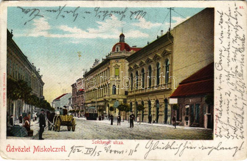 1902 Miskolc, Széchenyi utca, villamos. Ferenczi B. kiadása (EK) https://www.darabanth.com/de/455-Fernauktion/455.0/Ansichtskarten/Ungarn~1500005/1902-Miskolc-Szechenyi-utca-villamos-Ferenczi-B-kiadasa-EK~II3035375