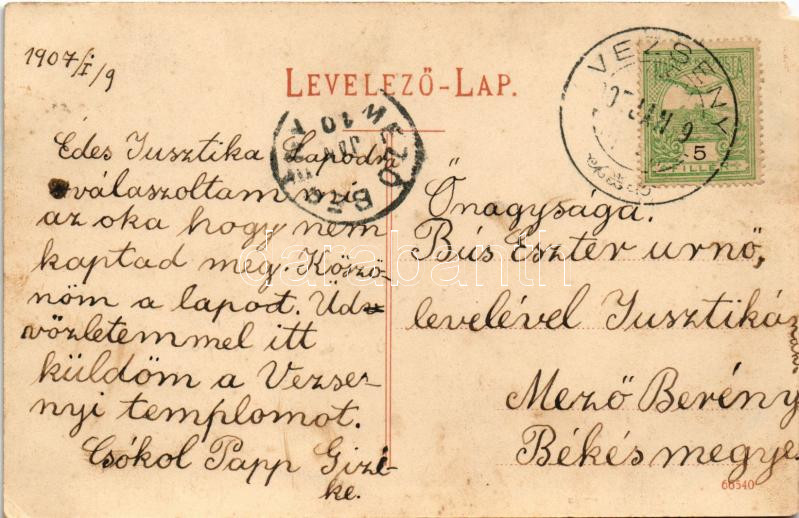 1907 Vezseny, Tiszavezseny; Református templom, postahivatal. Ragács G... https://www.darabanth.com/de/455-Fernauktion/455.0/Ansichtskarten/Ungarn~1500005/1907-Vezseny-Tiszavezseny-Reformatus-templom-postahivatal-Ragacs-Gyula-kiadasa-EM~II3036317