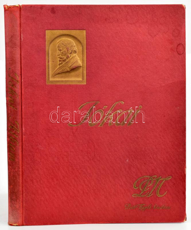 Jókai album. Képek, adatok, okmányok Jókai Mór életéből. A Pesti Napló előfizetőinek készült kiadás. [Bp., 1909,] Pesti Napló,(Hornyánszky-ny.), 140 p.+ 10 (műmellékletek, a képek előtt feliratozott hártyapapírokkal) t. Gazdag képanyaggal, szövegközti és egész oldalas rajzokkal, fotókkal, hasonmásokkal, dokumentumokkal illusztrált. Kiadói szecessziós dúsan aranyozott,dombornyomásos illusztrált egészvászon-kötésben, Gottermayer-kötés, kopott borítóval, egy lapon szakadással, kijáró lapokkal (21-36 p.)