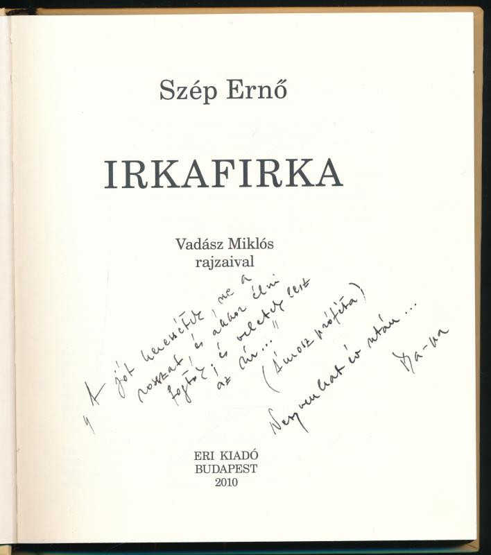 Szép Ernő: Irkafirka. Vadász Miklós rajzaival. Tandori Dezső bevezetőjével. Bp., 2010, Eri Kiadó. Kiadói kartonált papírkötés. Megjelent 500 példányban.