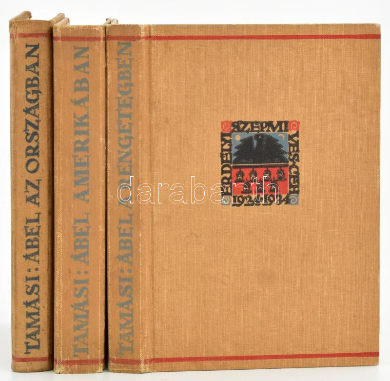 Tamási Áron: Ábel trilógia. I-III. köt. I. köt.: Ábel a rengetegben. II. köt.: Ábel az országban. III. köt.: Ábel Amerikában. Kolozsvár, én - 1934, Erdélyi Szépmíves Céh. Kiadói festett egészvászon-kötés, kopott, részben foltos borítókkal.