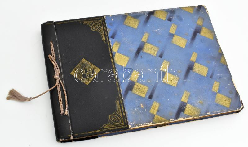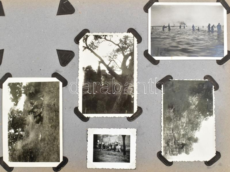 cca 1960-1970 Régi fotóalbum benne családi és uti- és kirándulásfotókkal, kb. 170-180 fotó, benne Balatonnal, Tihannyal, Hősök terével, Lillafüreddel, korabeli járművek fotóival. Félvászon fotómappában, kopott borítóval, a borítón kis sérüléssel.