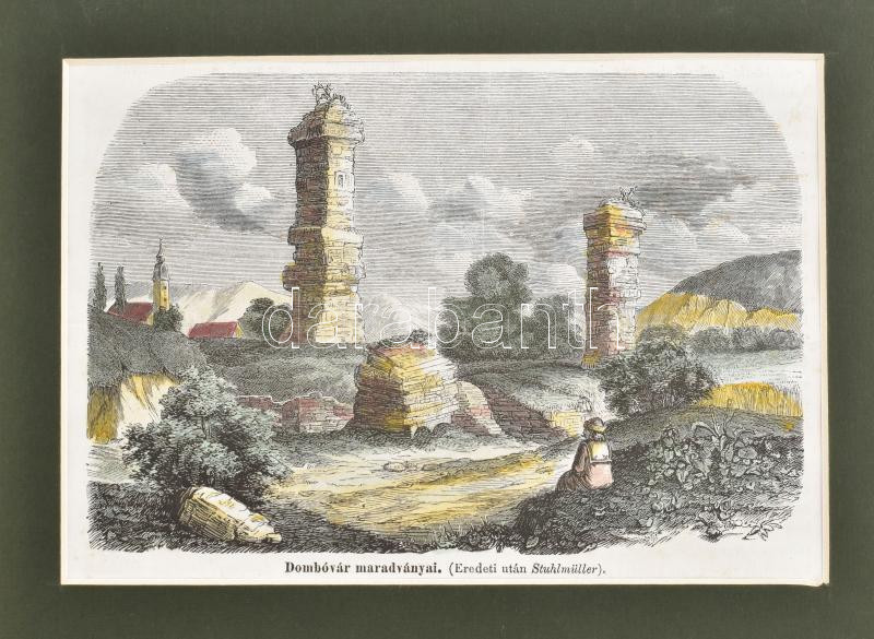 Beschreibung: cca 1865 Dombóvár maradványai színezett fametszet paszpartuban 15x12 cm