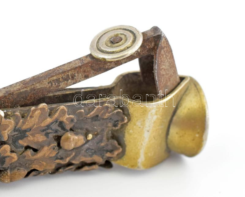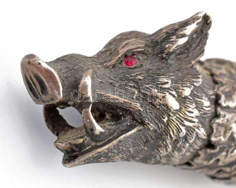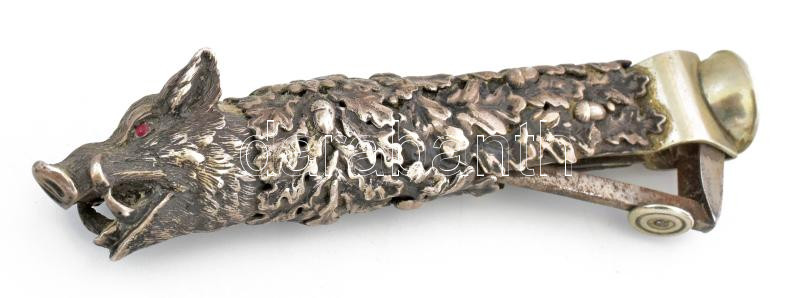 Beschreibung: Antik szivarvágó vadász témájú ezüst (Ag) vaddisznót ábrázoló plasztikus borítással 10 cm
