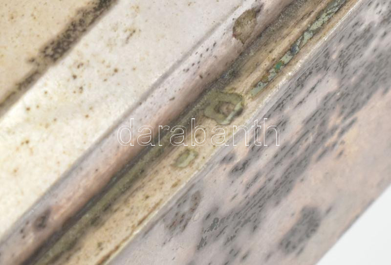 Ezüst (Ag) ékszeres ládika, fa betéttel, jelzett, 14x10 cm, bruttó: 28... https://www.darabanth.com/de/455-Fernauktion/455.0/Juwellen-und-Kunstobjekte-aus-Edelmetall/Juwellen-und-Kunstobjekte-aus-Edelmetall~2000033/Ezust-Ag-ekszeres-ladika-fa-betettel-jelzett-14x10-cm-brutto-285-g~II3040040