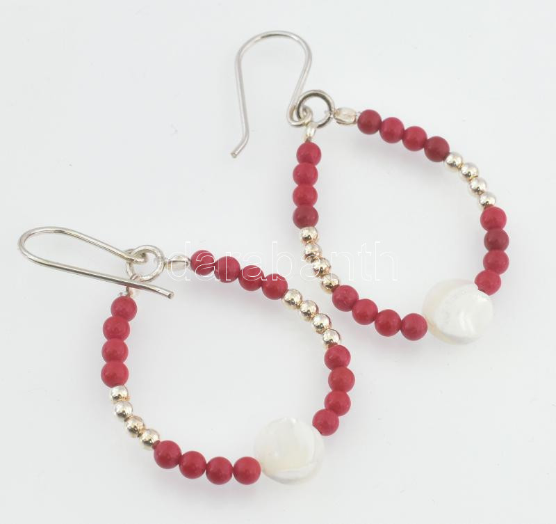 Beschreibung: Ezüst(Ag) fülbevalópár korall díszítéssel, jelzés nélkül, bruttó: 3 g