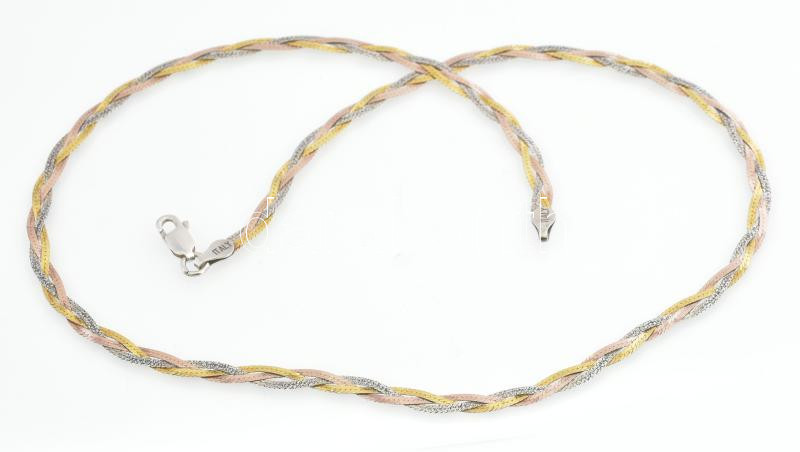 Beschreibung: Ezüst(Ag) háromszálas fonott, aranyozott nyaklánc, jelzett, h: 42 cm, nettó: 3,7 g
