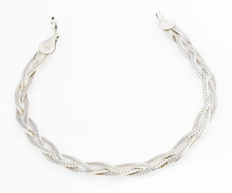 Beschreibung: Ezüst(Ag) háromszálas fonott kígyó karkötő, jelzett, h: 17,5 cm, nettó: 3,8 g