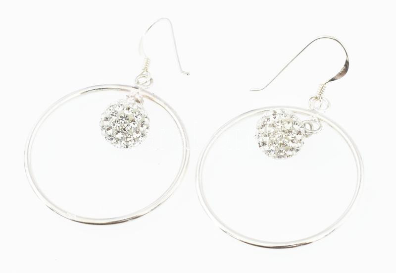 Beschreibung: Ezüst(Ag) karikafülbevaló-pár shamballa gyönggyel, jelzett, d: 3 cm, bruttó: 5,2 g