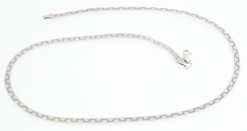 Beschreibung: Ezüst(Ag) lapos meandermintás kígyó nyaklánc, jelzett, h: 42 cm, nettó: 5,6 g