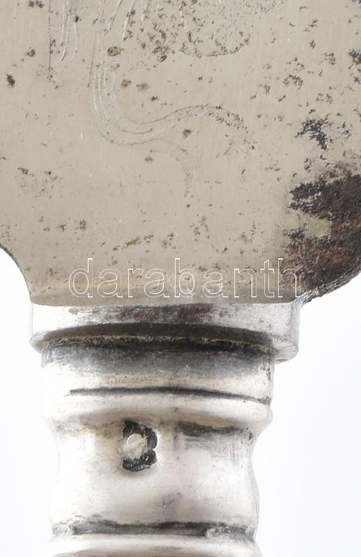 Ezüst(Ag) nyelű halas kés, jelzett, h: 26 cm, pengéjén rozsdafoltokkal... https://www.darabanth.com/de/455-Fernauktion/455.0/Juwellen-und-Kunstobjekte-aus-Edelmetall/Juwellen-und-Kunstobjekte-aus-Edelmetall~2000033/EzustAg-nyelu-halas-kes-jelzett-h-26-cm-pengejen-rozsdafoltokkal-brutto-96-2-g~II3038346