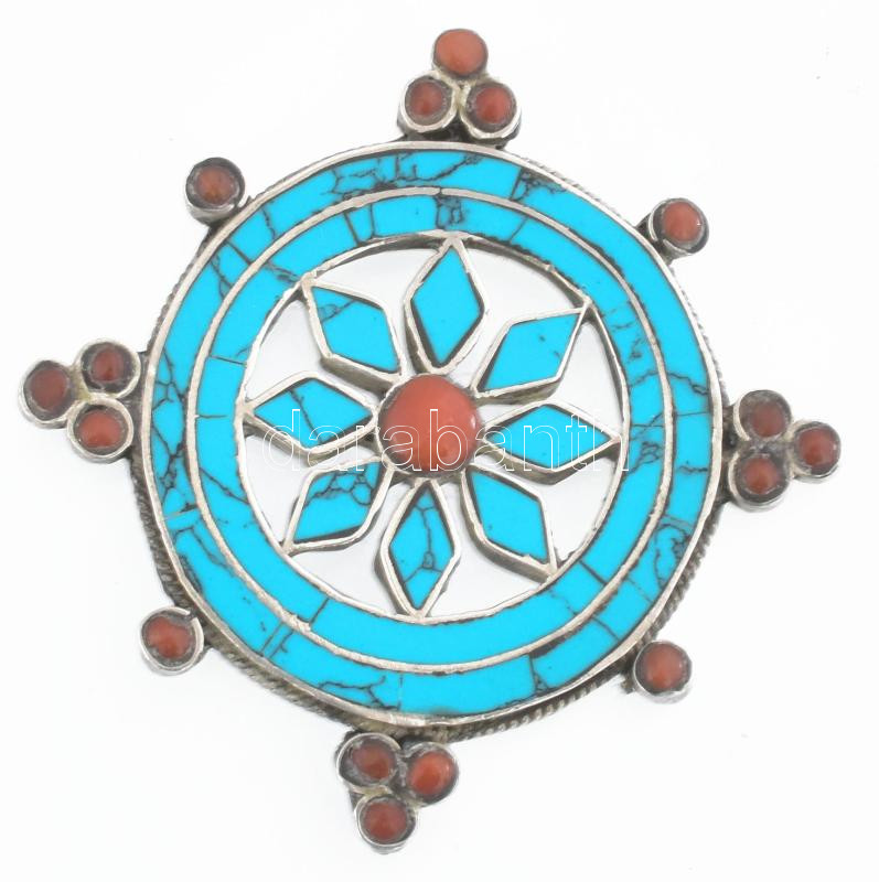 Ezüst(Ag) türkizzel és korallal kirakott medál, jelzés nélkül, d: 4 cm... https://www.darabanth.com/de/455-Fernauktion/455.0/Juwellen-und-Kunstobjekte-aus-Edelmetall/Juwellen-und-Kunstobjekte-aus-Edelmetall~2000033/EzustAg-turkizzel-es-korallal-kirakott-medal-jelzes-nelkul-d-4-cm-brutto-6-5-g~II3037974