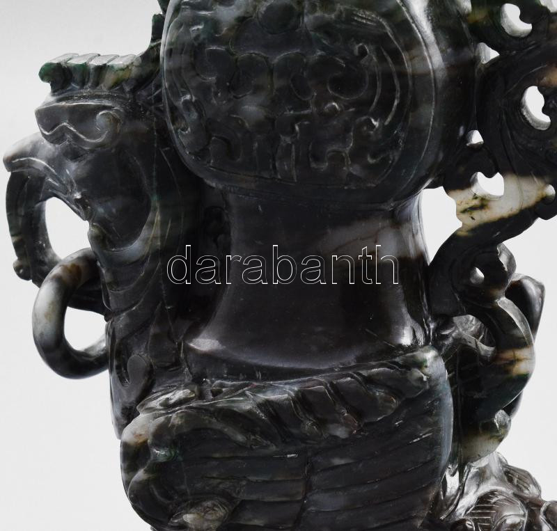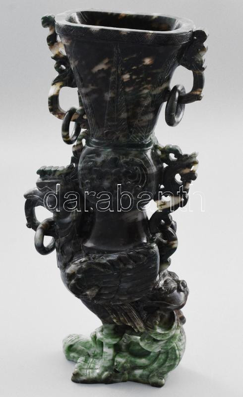 Beschreibung: Kínai jáde váza. Gazdagon faragott díszítéssel, madáralakkal díszített jáde váza, kis kopással, m: 33 cm