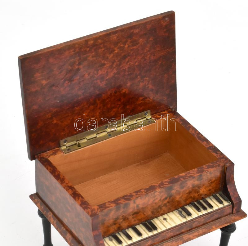 Pianínó formájú antik ékszeres doboz, működik, kopással, 15x11x12 cm https://www.darabanth.com/de/455-Fernauktion/455.0/Kunst-Dokumente-andere-Sammelgebiete/Antik~500008/Pianino-formaju-antik-ekszeres-doboz-mukodik-kopassal-15x11x12-cm~II3037625