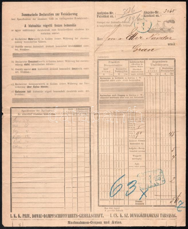 1886 Pozsony (Pressburg), Első Duna-Gőzhajózási Társaság (DDSG) fuvarl... https://www.darabanth.com/de/455-Fernauktion/455.0/Kunst-Dokumente-andere-Sammelgebiete/Dokument~500020/1886-Pozsony-Pressburg-Elso-Duna-Gozhajozasi-Tarsasag-DDSG-fuvarlevel-5kr-okmanybelyeggel~II3033127
