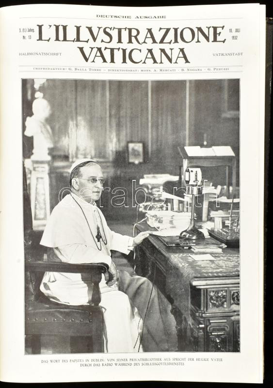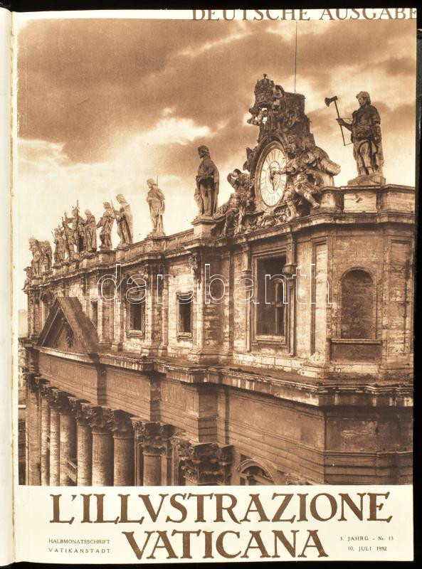 1932 L'Illustrazione Vaticana július-decemberi számai könyvbe kötve https://www.darabanth.com/de/455-Fernauktion/455.0/Kunst-Dokumente-andere-Sammelgebiete/Drucksachen~2000012/1932-LIllustrazione-Vaticana-julius-decemberi-szamai-konyvbe-kotve~II3038999