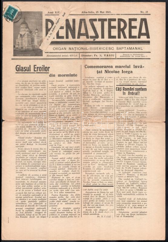 1941 Renasterea c. román nyelvű folyóirat XIX. évf. 21. száma, 1941. m... https://www.darabanth.com/de/455-Fernauktion/455.0/Kunst-Dokumente-andere-Sammelgebiete/Drucksachen~2000012/1941-Renasterea-c-roman-nyelvu-folyoirat-XIX-evf-21-szama-1941-maj-25-2-p-Romanian~II3039913