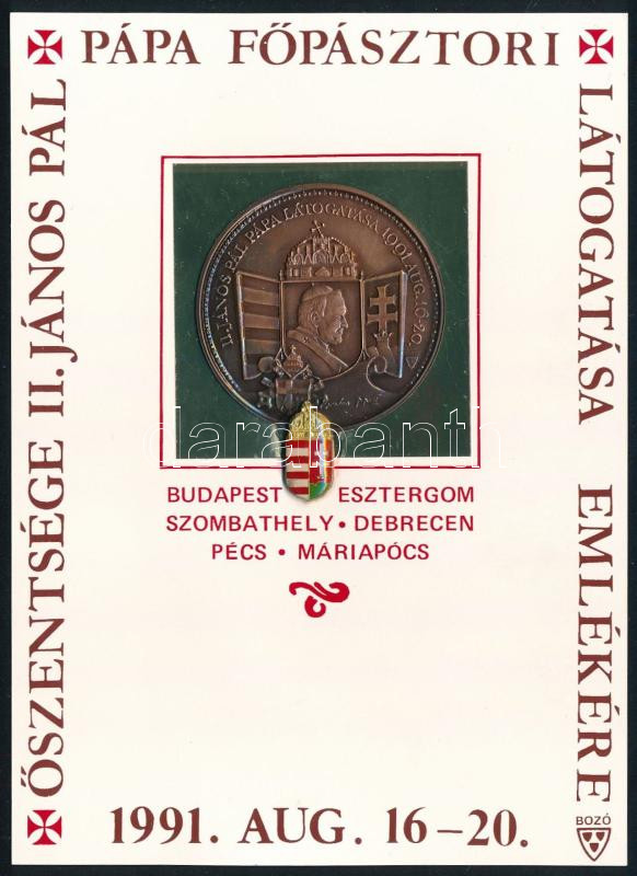 1991 "Őszentsége II. János Pál Pápa Főpásztori Látogatása emlékére. 19... https://www.darabanth.com/de/455-Fernauktion/455.0/Kunst-Dokumente-andere-Sammelgebiete/Drucksachen~2000012/1991-Oszentsege-II-Janos-Pal-Papa-Fopasztori-Latogatasa-emlekere-1991-augusztus-16-20~II3017232