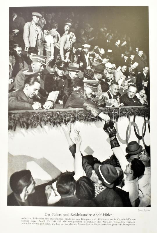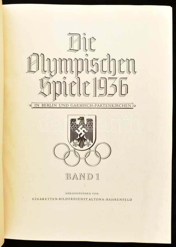 Olympia 1936. Die Olympischen Winterspiele vorschau auf Berlin. Band I. A berlini olimpia gyűjtőalbuma, kompletten beragasztott képpel Német nyelven. Kiadói aranyozott, festett egészvászon-kötésben, jó állapotban.