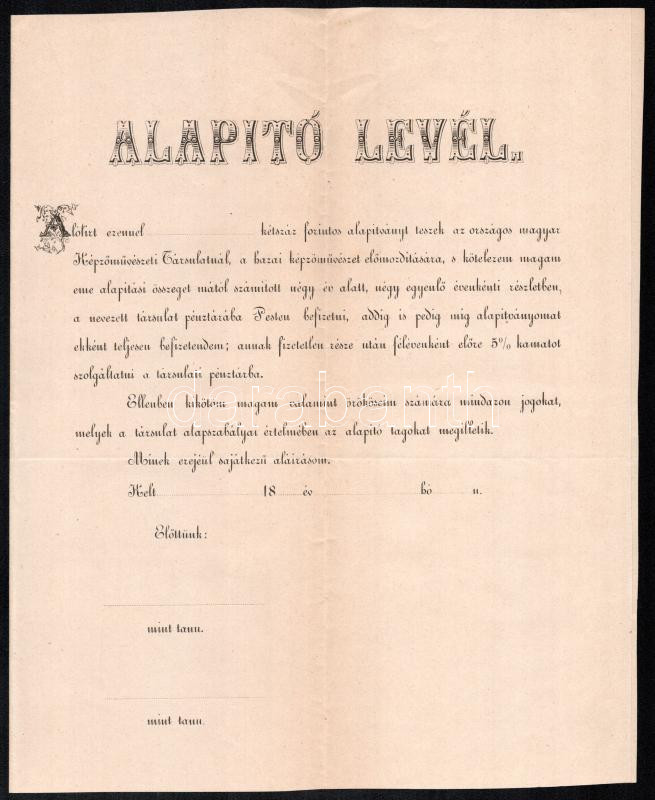 cca 1870 A Képzőművészeti Társulat kitöltetlen alapító (adomány) level... https://www.darabanth.com/de/455-Fernauktion/455.0/Kunst-Dokumente-andere-Sammelgebiete/Drucksachen~2000012/cca-1870-A-Kepzomuveszeti-Tarsulat-kitoltetlen-alapito-adomany-levele-benne-a-Kepzomuveszeti~II3037265