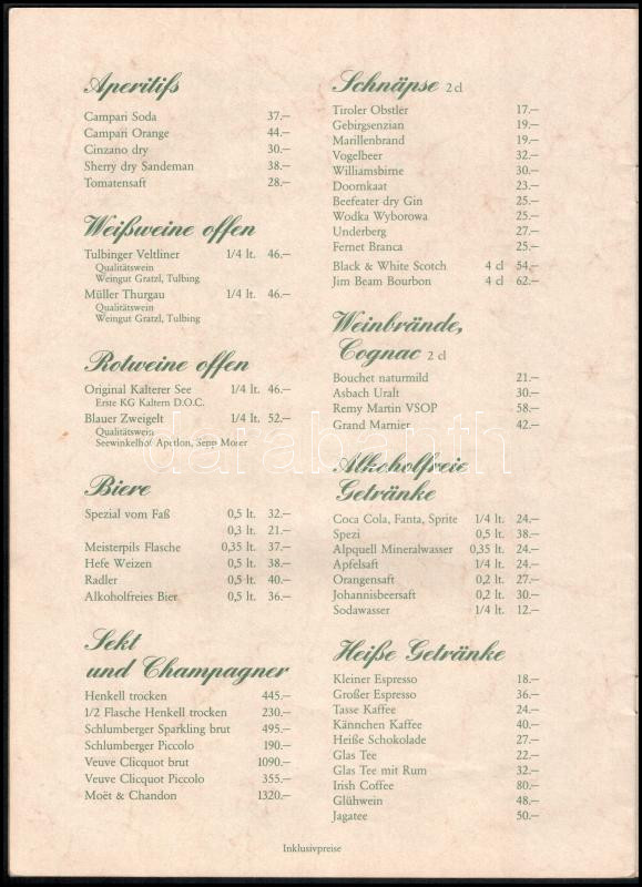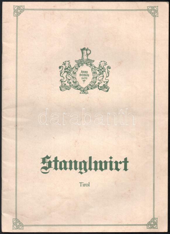 cca 1960-1970 Stanglwirt Tirol német nyelvű ét- és itallap. https://www.darabanth.com/de/455-Fernauktion/455.0/Kunst-Dokumente-andere-Sammelgebiete/Drucksachen~2000012/cca-1960-1970-Stanglwirt-Tirol-nemet-nyelvu-et-es-itallap~II3039855