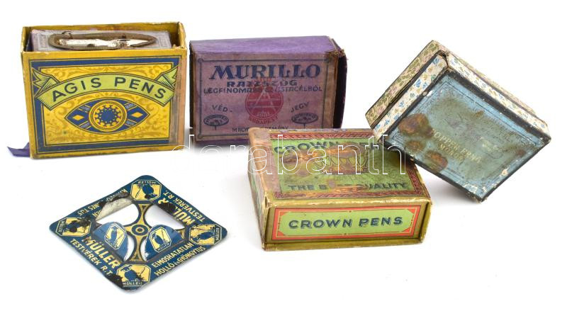 4 db régi papírdoboz (Popper Ernő Monor, Murillo, Crown Pens, Agis Pen... https://www.darabanth.com/de/455-Fernauktion/455.0/Kunst-Dokumente-andere-Sammelgebiete/Flohmarkt~500014/4-db-regi-papirdoboz-Popper-Erno-Monor-Murillo-Crown-Pens-Agis-Pens-bennuk-kulonfele~II3033028