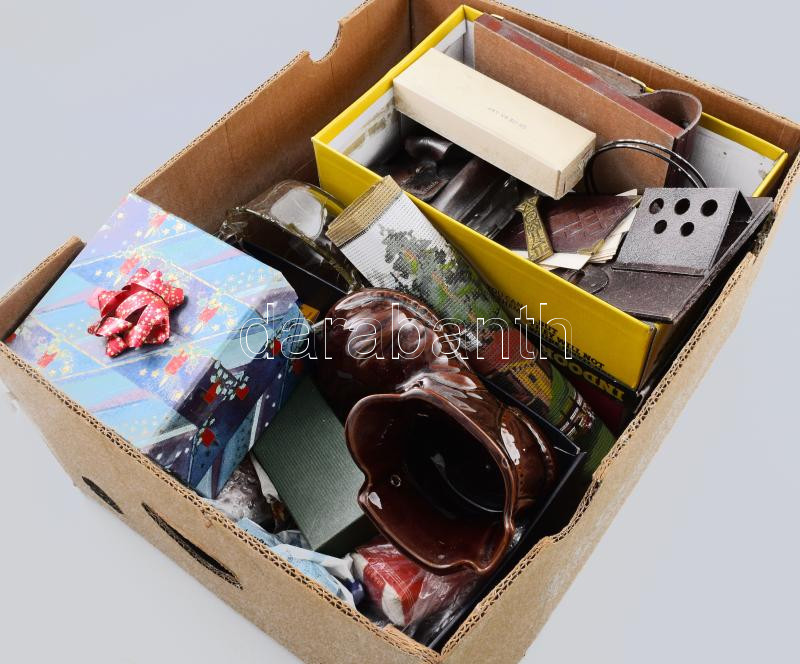 Beschreibung: Egy banános doboznyi bolha tétel, közte érdekes darabokkal és karácsonyi témájú díszekkel