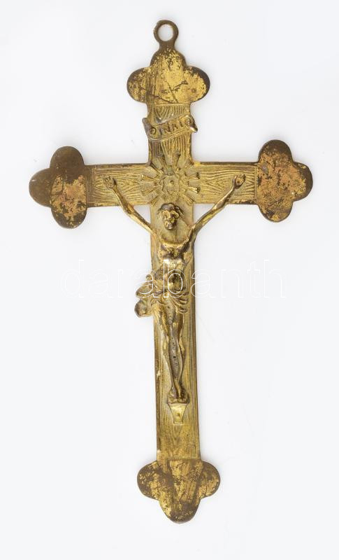Feszület korpusszal. Préselt brozírozott fém 15 cm https://www.darabanth.com/de/455-Fernauktion/455.0/Kunst-Dokumente-andere-Sammelgebiete/Flohmarkt~500014/Feszulet-korpusszal-Preselt-brozirozott-fem-15-cm~II3037613
