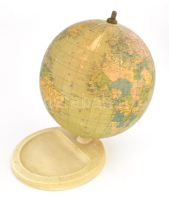Földgömb. Öntöttvas talppal, melyből kijár, kopott karton glóbusszal, ... https://www.darabanth.com/de/455-Fernauktion/455.0/Kunst-Dokumente-andere-Sammelgebiete/Flohmarkt~500014/Foldgomb-Ontottvas-talppal-melybol-kijar-kopott-karton-globusszal-m-32-cm~II3033766