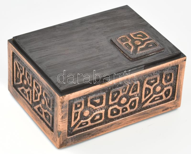 Beschreibung: Iparművész ékszeres ládika, fa betéttel, kis kopással, 14x10x7 cm