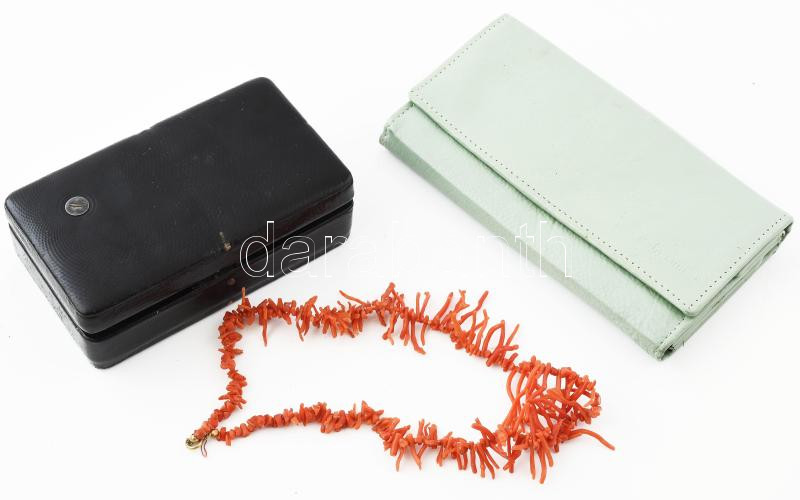 Beschreibung: Kígyóbőr ékszeres doboz 8x12 cm, + bőr tárca, + korall nyaklánc