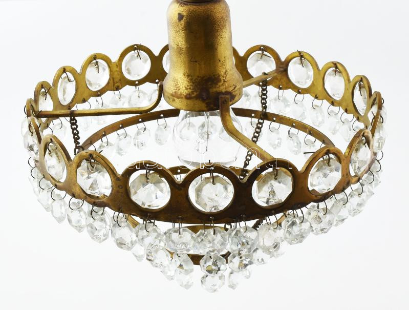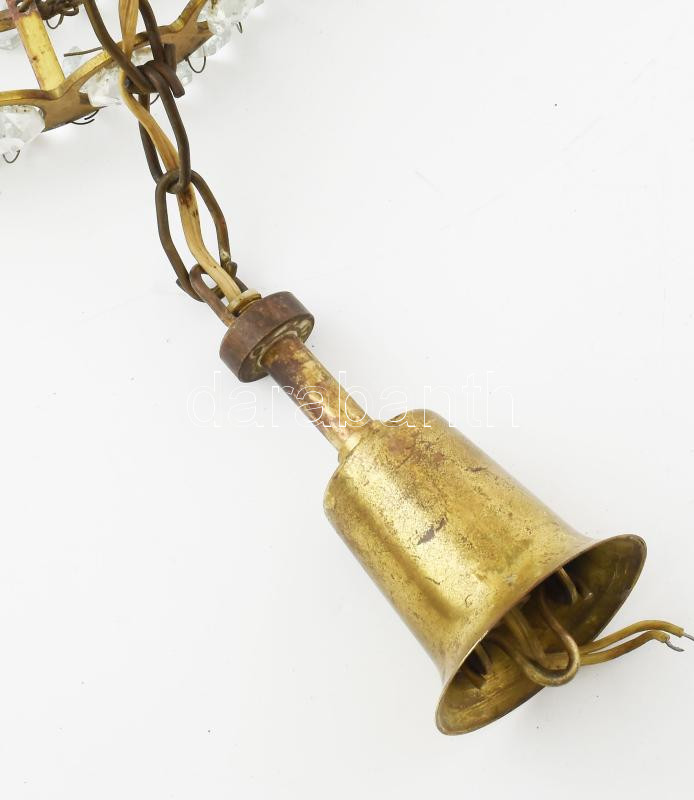 Beschreibung: Kristály csillár. Réz, kristály. m: 60 cm, d: 25 cm