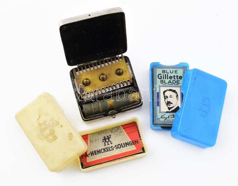 Régebbi borotva fém tokban és 6 db 1940 körüli Gillette Blade és 1 db ... https://www.darabanth.com/de/455-Fernauktion/455.0/Kunst-Dokumente-andere-Sammelgebiete/Flohmarkt~500014/Regebbi-borotva-fem-tokban-es-6-db-1940-koruli-Gillette-Blade-es-1-db-JA-Henckels-Solingen~II3033299