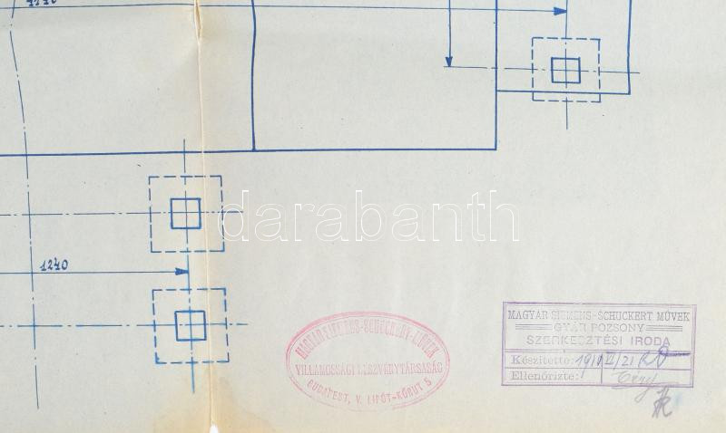 1910 Siemens-Schuckert Művek Pozsony motorgenerátor tervrajza, szakadá... https://www.darabanth.com/de/455-Fernauktion/455.0/Kunst-Dokumente-andere-Sammelgebiete/Historische-Dokumenten-Handschriften~500021/1910-Siemens-Schuckert-Muvek-Pozsony-motorgenerator-tervrajza-szakadassal-70x84-cm~II3038608