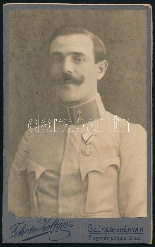 1911 Katonaportré, keményhátú fotó Fekete Zoltán székesfehérvári műter... https://www.darabanth.com/de/455-Fernauktion/455.0/Kunst-Dokumente-andere-Sammelgebiete/Militaria~2000008/1911-Katonaportre-kemenyhatu-foto-Fekete-Zoltan-szekesfehervari-mutermebol-10-5x6-5-cm~II3035543