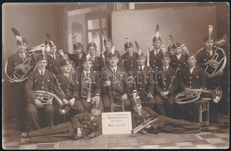 1936. márc. 15. Szarvas, levente zenekar csoportképe, fotólap, a hátol... https://www.darabanth.com/de/455-Fernauktion/455.0/Kunst-Dokumente-andere-Sammelgebiete/Militaria~2000008/1936-marc-15-Szarvas-levente-zenekar-csoportkepe-fotolap-a-hatoldalon-feliratozva-~II3035587