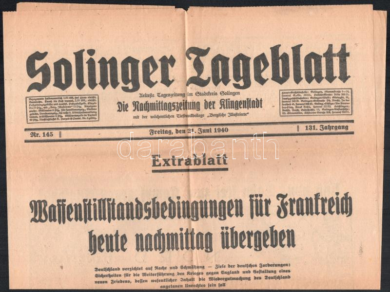 1940 Franciaország megadja magát a Német Birodalomnak, Soliber Tagebla... https://www.darabanth.com/de/455-Fernauktion/455.0/Kunst-Dokumente-andere-Sammelgebiete/Militaria~2000008/1940-Franciaorszag-megadja-magat-a-Nemet-Birodalomnak-Soliber-Tageblatt-kulonszama~II3035868