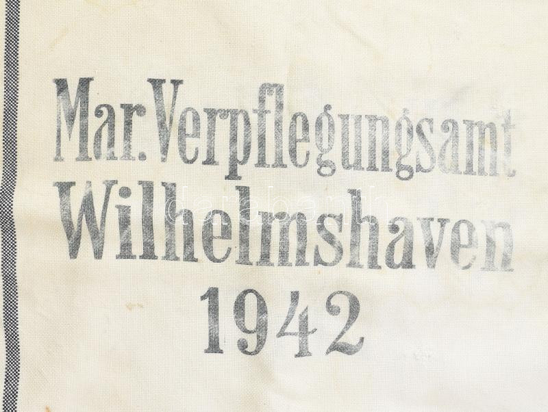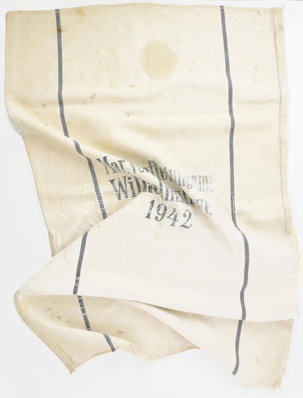 Mar. Verpdfelegungsamt Wilhelshaven 1942 nagy méretű jutazsák horogker... https://www.darabanth.com/de/455-Fernauktion/455.0/Kunst-Dokumente-andere-Sammelgebiete/Militaria~2000008/Mar-Verpdfelegungsamt-Wilhelshaven-1942-nagy-meretu-jutazsak-horogkeresztes-jelzessel-110x65-cm~II3032992