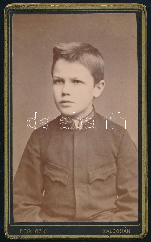 cca 1885 Kisfiú katonai ruhában, keményhátú fotó Peruczki Simon kalocs... https://www.darabanth.com/de/455-Fernauktion/455.0/Kunst-Dokumente-andere-Sammelgebiete/Militaria~2000008/cca-1885-Kisfiu-katonai-ruhaban-kemenyhatu-foto-Peruczki-Simon-kalocsai-mutermebol-10-5x6-5-cm~II3035690