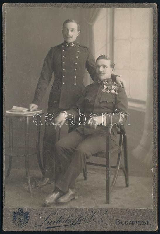 cca 1910 Katonák műtermi portréja, keményhátú fotó Liederhoffer budape... https://www.darabanth.com/de/455-Fernauktion/455.0/Kunst-Dokumente-andere-Sammelgebiete/Militaria~2000008/cca-1910-Katonak-mutermi-portreja-kemenyhatu-foto-Liederhoffer-budapesti-mutermebol-10-5x6-5-cm~II3037159