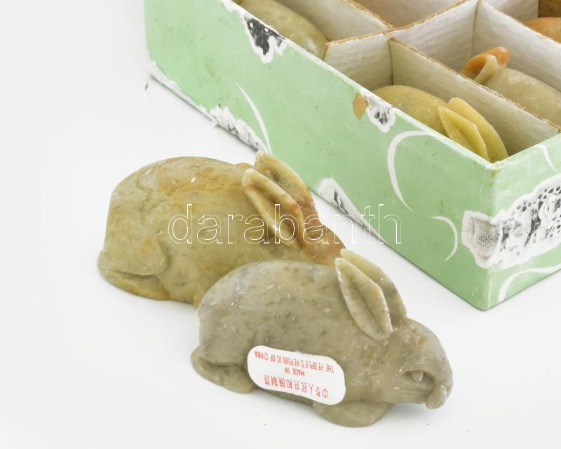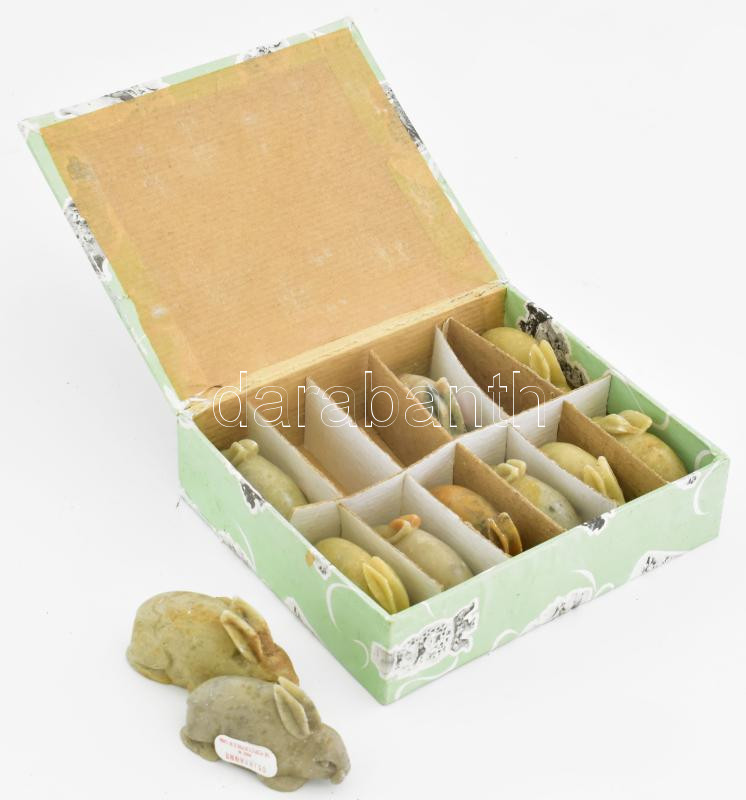 Beschreibung: 11 db kínai jáde nyúl figura, eredeti dobozában egyenként 5,5 cm