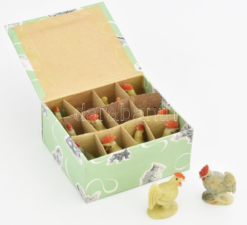 Beschreibung: 12 db kínai jáde csirke figura, eredeti dobozában, egyenként m: 4 cm